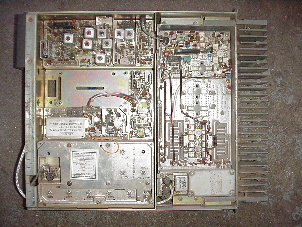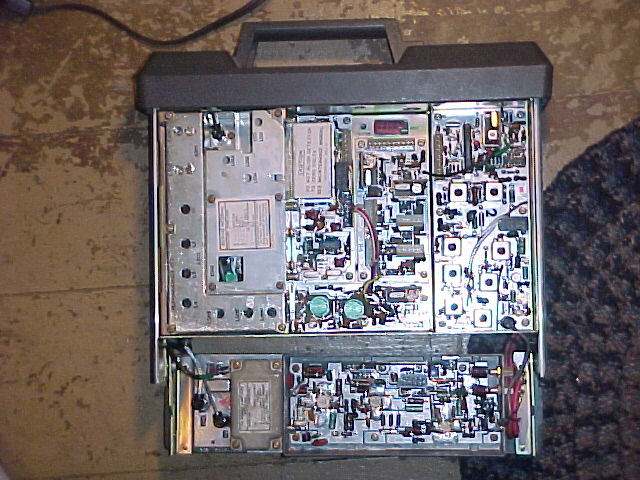Do you have instructions on how to convert a mobile to repeater duty? Let me know and I'll add it here. From what I understand, it's the same jumpers in the SAS board as on the base station. But there's one other mod needed that keeps power up in the exciter all the time. This was done to save current draw on a mobile installation. To convert to repeater duty, you need the exciter and the receiver powered up all the time. This might be enough information to do the mod yourself if you have a manual. If anyone has more specific information, let me have it and I'll post it here. The mobile and base station RF modules are interchangeable. The SAS board is very similar, but different as explained above. There is also a difference where the microphone connects. I strongly urge you to modify a base station. There is much more room and it makes it much easier to work on and install. The base station can even be mounted in a 19 inch rack. I know they're harder to find, but it's worth the hunt. Get any band base station, then change the modules from a mobile in your band. Can anyone identify this unit? What does the box added to the top do?