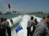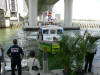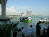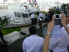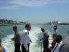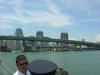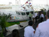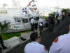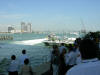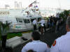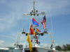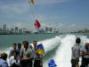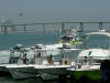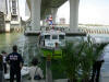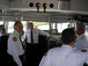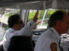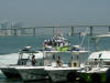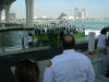 Pictures from the 4/13/2007 dedication of Miami Dade Fire Rescue Fire Boat 1. 50 feet. Click on any image to see it full size. Ceremony and Class Graduation. Maneuvering demonstration. It can move in any direction. In one drill, it had the bow within arms reach of a buoy, then circled the buoy with the bow being within reach of the buoy the whole time. VIP trip with some MDPD and older MDFR boats in the foreground. On Board. Everything is very high tech including video and recording. Under way. With 36 on board, we were going 43 MPH between the cruise ships and the Mac Arthur Causeway. In the video you'll see we're keeping up with the traffic on the highway. FB1's top speed is 50 MPH.